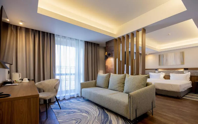 Интерьер отеля выполнен в этностиле, а из окон открывается вид на исторические достопримечательности города, среди которых магометанская мечеть.