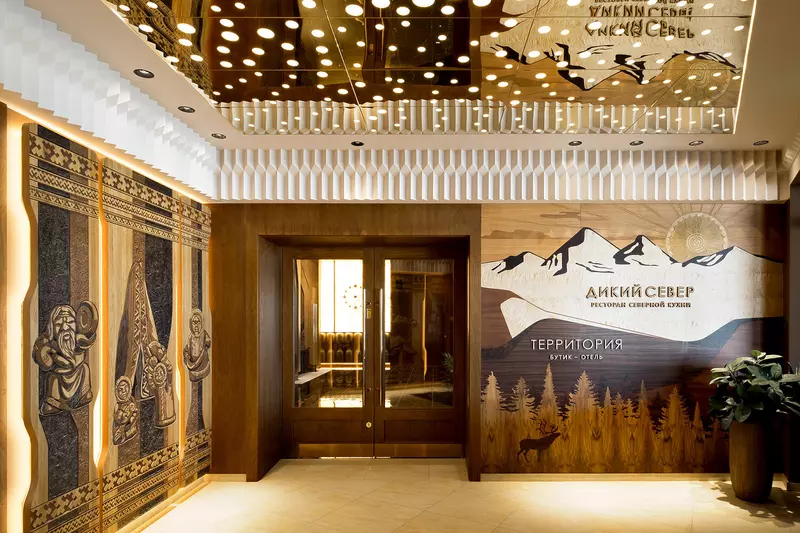 В Магадане открылся бутик-отель «Территория».В отеле 18 номеров различных категорий, каждый из которых оформлен в интерьере, вдохновлённым культурой северных народов и спецификой региона. В лобби отеля установлен огромный экран, на котором демонстрируются фильмы о красотах колымского края, рыбалке и охоте, погружая гостей в атмосферу Северной природы. Ресторан «Дикий Север», расположенный в отеле, приглашает гостей отведать блюда северной кухни.В целом стиль «Территории» можно обозначить как современный. От первоначальной идеи сделать все в модном минимализме на основе бетонных текстур отказались, материал исключили по причине климата, бетон смотрелся бы здесь депрессивно, а вот дерево идеально вписывается в природный и идейный ландшафт.