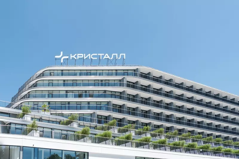 В этот день санаторий «Кристалл» принял первых гостей. Санаторий находится он рядом с Тисо-Самшитовой рощей и включает 354 номера. Стоимость объекта 12 млрд рублей. Инновационный медицинский центр санатория площадью 5000 кв.м, оснащенный современным оборудованием для бальнеологии,грязелечения, генетических и иммунологических исследований, вмещает около 80 медицинских кабинетов и свыше 90 медицинских специалистов. Архитектура «Кристалла» вписана в природный рельеф — здание следует естественным изгибам местности. На территории есть зеленые маршруты для терренкура и просторный атриум с зимним садом, где представлено 20 видов тропических растений.